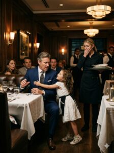 At Table Five, the man in the tailored suit had just reached for his water when Lily ran straight to him and threw both arms around his waist.